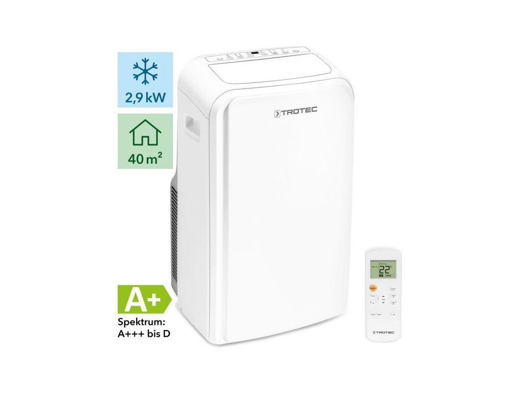 Trotec PAC 3000 X A+ ponúka chladiaci výkon 10000 Btu/h a ochladí tak miestnosti do 40 m2 (105 m3). Prevádzková teplota je 16 – 35 °C. Pomocou úchytiek je možné ju pohodlne premiestňovať, poprípade je možné k jej transportu využiť pojazdné kolieska. Súčasťou balenia je aj diaľkové ovládanie.