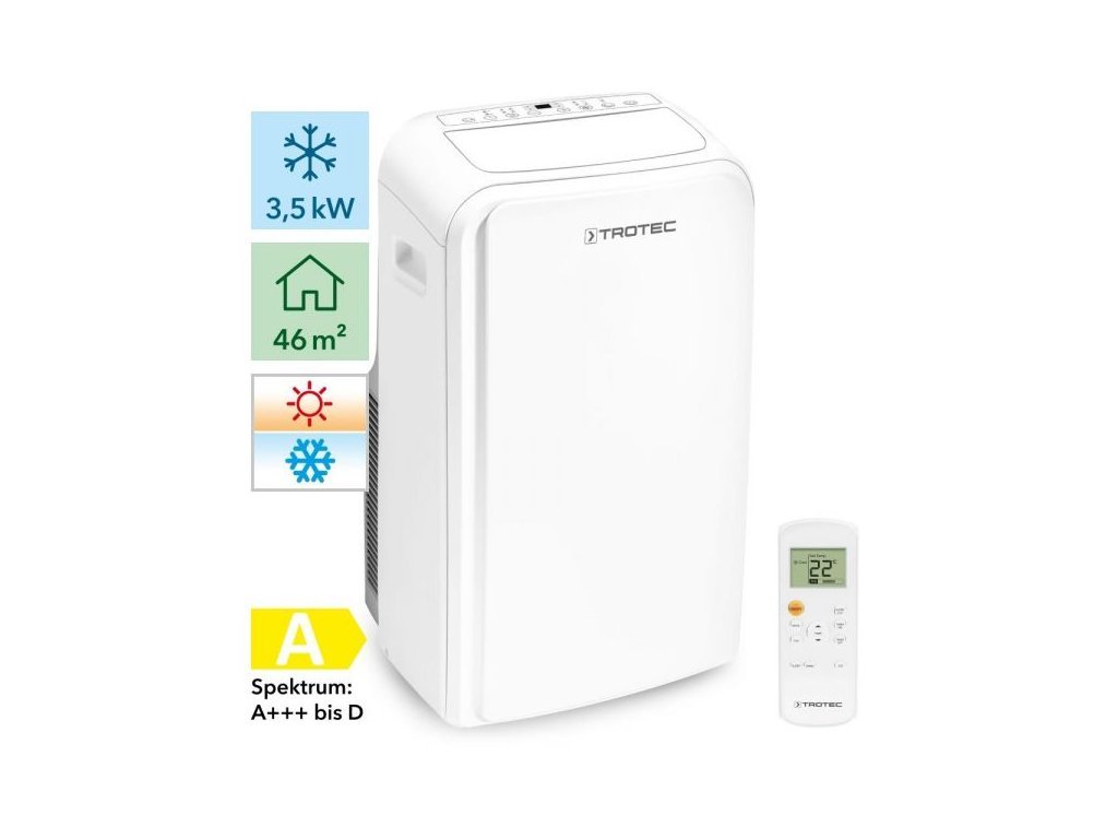 Trotec PAC 3500 SH ponúka chladiaci výkon 12000 Btu/h a ochladí tak miestnosti do 46 m2 (115 m3). Prevádzková teplota je 16 – 35 °C. Pomocou úchytiek je možné ju pohodlne premiestňovať, poprípade je možné k jej transportu využiť pojazdné kolieska. Súčasťou balenia je aj diaľkové ovládanie.