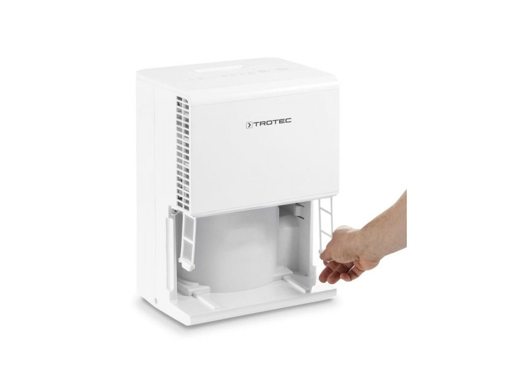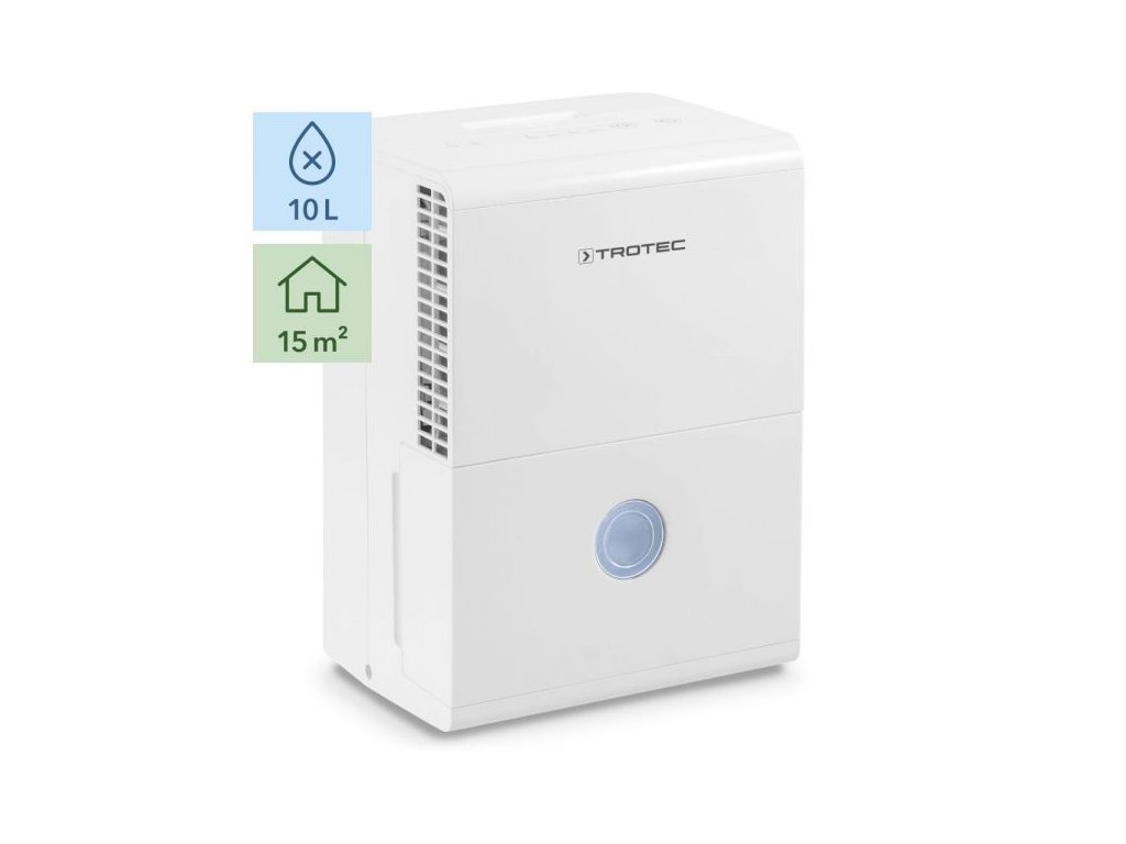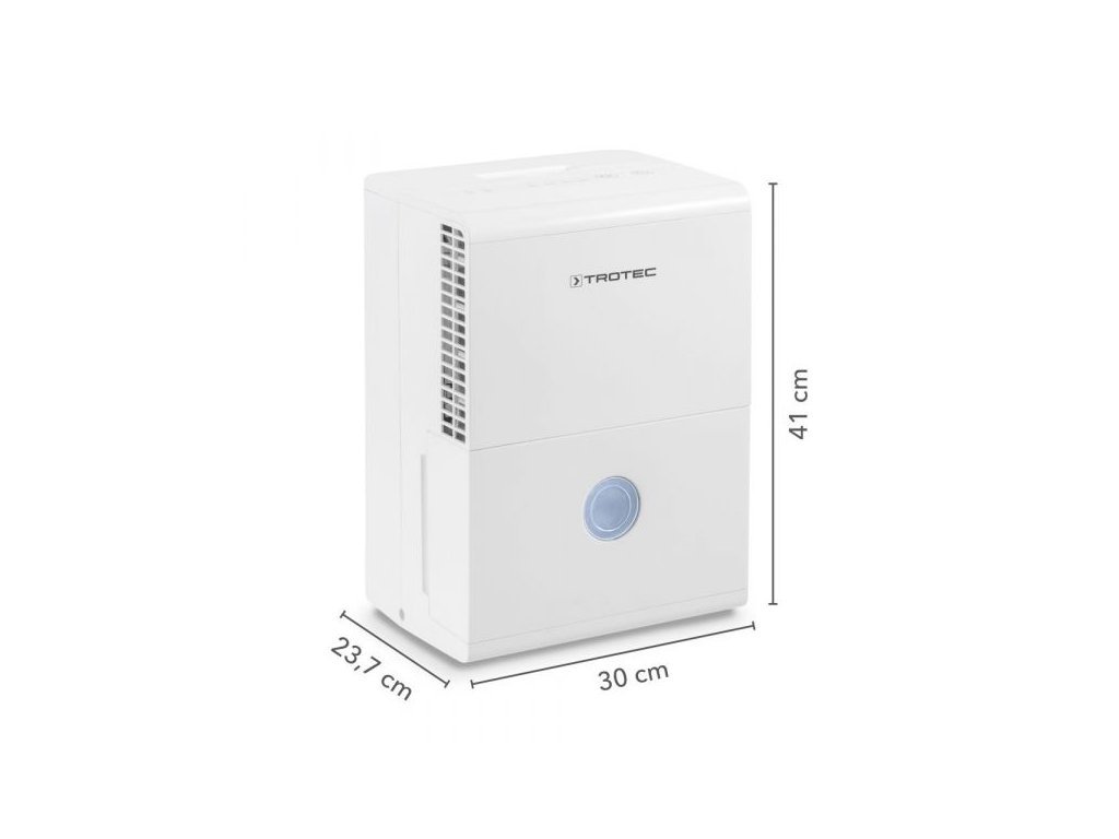 Prístroj Trotec TTK 28 E pracuje s odvlhčovacím výkonom 10 l/24 h. Odvlhčí tak miestnosti s veľkosťou až 15 m2. Nádržku o objemu 2 l nie je nutné vylievať každou chvíli a so spotrebou max. 330 W sa nemusíte báť vysokých účtov za elektrinu.