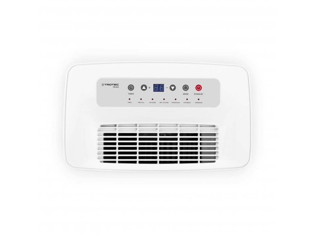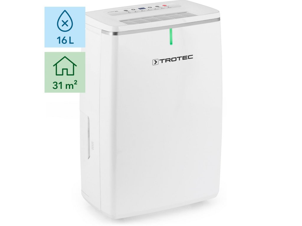 Prístroj Trotec TTK 53 E pracuje s odvlhčovacím výkonom 16 l/24 h. Odvlhčí tak miestnosti s veľkosťou až 40 m2. Nádržku o objemu 5,5 l nie je nutné vylievať každou chvíli a so spotrebou max. 240 W sa nemusíte báť vysokých účtov za elektrinu.