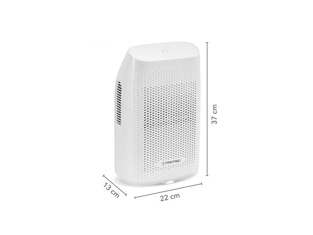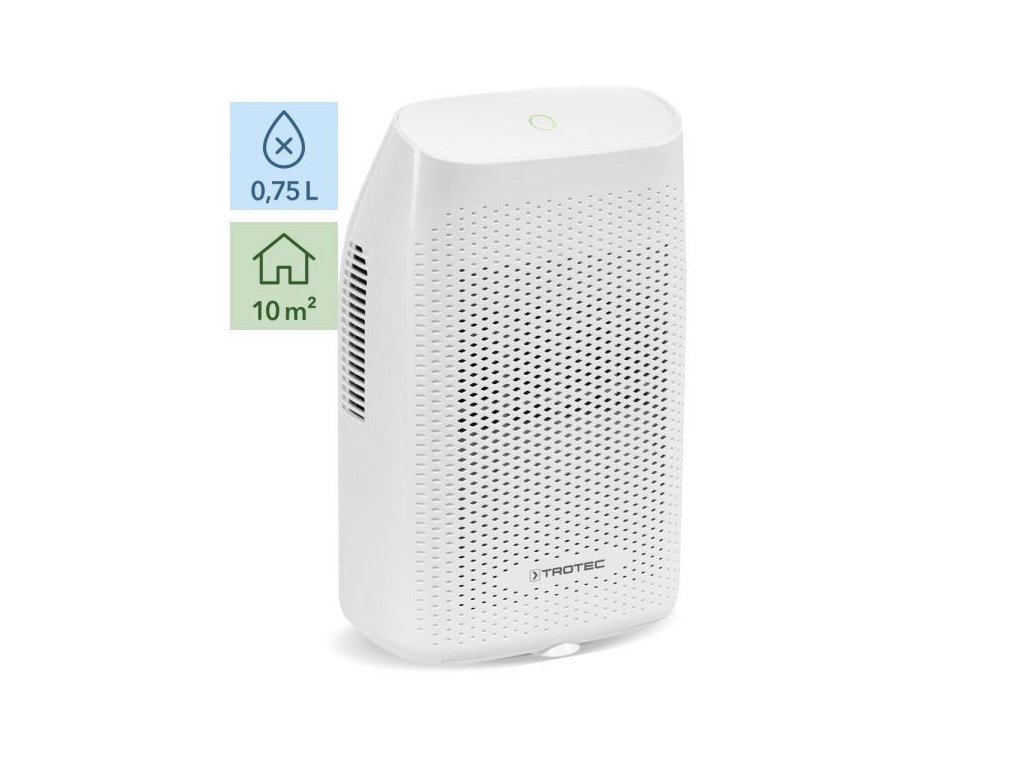 Prístroj Trotec TTP 10 E pracuje s odvlhčovacím výkonom 750 ml/24 h. Odvlhčí tak miestnosti s veľkosťou až 10 m2. Nádržku o objemu 2 l nie je nutné vylievať každou chvíli a so spotrebou max. 40 W sa nemusíte báť vysokých účtov za elektrinu.
