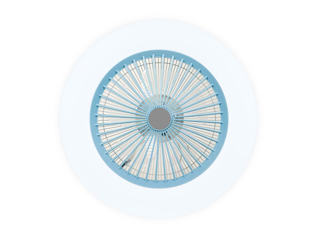 Farba ventilátora je modrá a hodí sa tak do obývacích i detských izieb. Samotné lopatky sú navyše chránené robustným telom ventilátora, čo zabraňuje prípadnému riziku poranenia. Prístroj je dodávaný vrátane diaľkového ovládania.