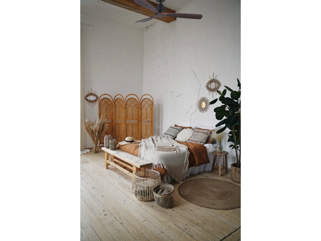 Stropný ventilátor Martec Menorca vo farbe tmavo hnedá. Teleso je z kovu a má čiernu farbu. Je vhodný pre miestnosti o veľkosti 14 - 20 m2. Reverzné lopatky umožňujú otepľovanie miestnosti v zime - zimný (spätný) chod stropného ventilátora tlačí teplý vzduch od stropu dole.